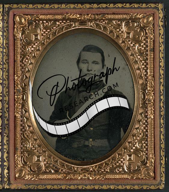 Title: [Unidentified soldier in Confederate captain's uniform, red sash, and kepi marked W.V. or V.V.]