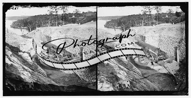 Caption from negative sleeve: Confederate battery on James River above Dutch Gap canal.
