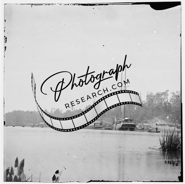 Boats,pontoon bridge,water vessels,York River,Conway Landing,Virginia,VA,1861