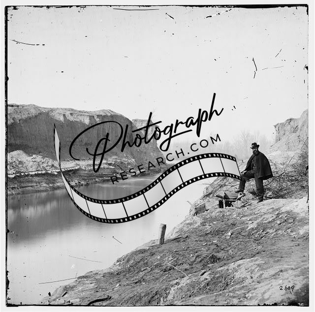 View,completed canal,water bodies,cliffs,Dutch Gap,Virginia,VA,Civil War,1865