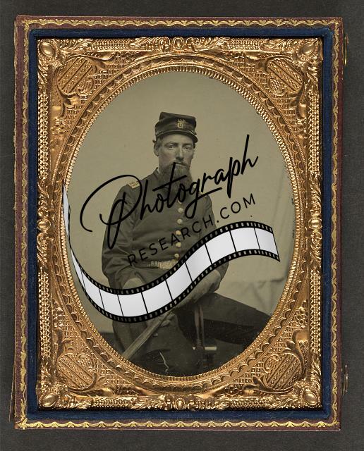 Summary: Photograph shows Company B 103 Regiment on forage cap either designating the U.S. Colored Troops or U.S. Volunteers Service.