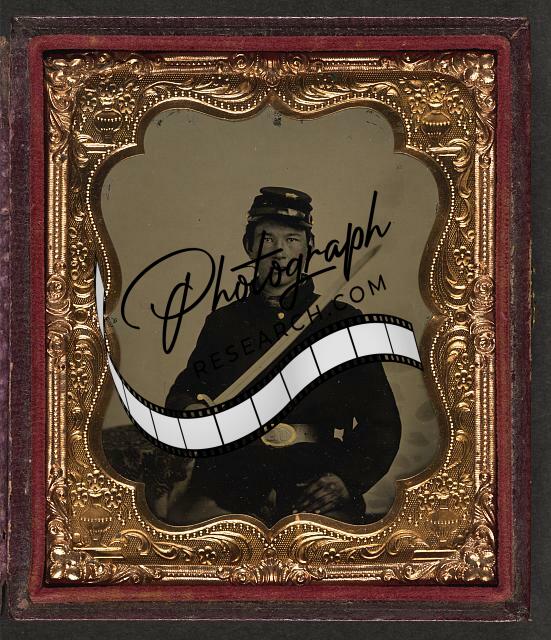 Title: [Unidentified soldier in Union uniform and forage cap with infantry insignia and 2nd Corps Army of the Potomac badge]