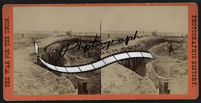 Summary: showing water-filled ditch and the chevaux-de-frise in front of Fort Sedgwick, Petersburg, Va.