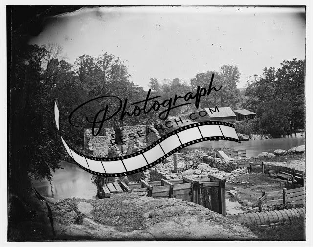 Mill,James River,Kanawah canal above Richmond,structures,Virginia,J Reekie,1865