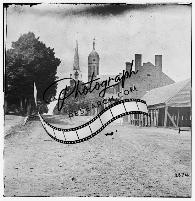 Saint Georges Episcopal church,Court House,steeple,Fredericksburg,Virginia,1864
