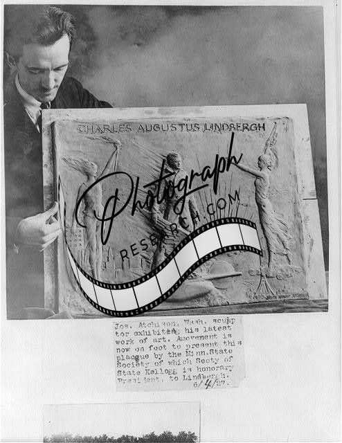 Joseph Anthony Atchison,w/ his plaque commemorating Charles Lindbergh,1927