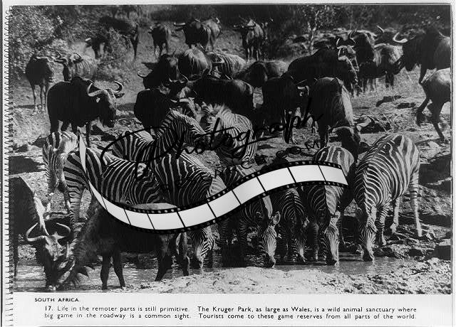 South Africa,remote,primitive,Kruger National Park,zebras,water buffaloes,1951