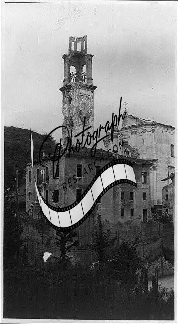 Italian Front,Ruined Steeple in town,World War I,WWI,War Damage,c1918,Italy