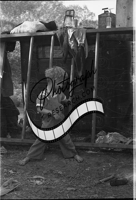 Title: Son of destitute migrant, American River camp, near Sacremento, California. The boy has dysentery. See mount 9921-C