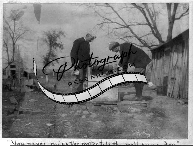 Never miss,water until,well runs dry,wells,supply,looking down,buildings,c1897