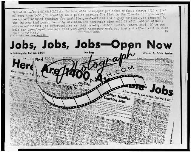 Jobs,Employment Pages,Indianapolis newspaper,employment opportunities,1961,IN