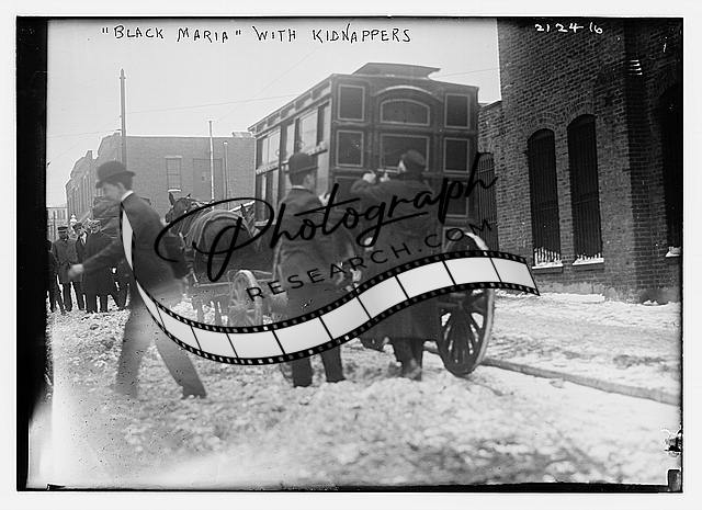 'Black Maria' with kidnappers,police van,horses,people,Bain News Service,snow