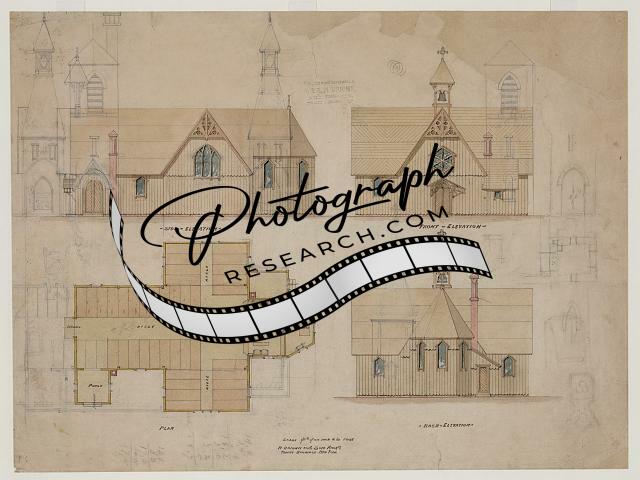 Wood church with many added steeples,1853,architecture,R. Upjohn,son,churches