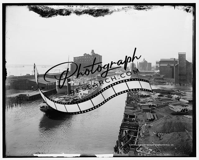 Creek,elevators near foot,grain elevator,Main Street,Buffalo,New York,NY,c1900