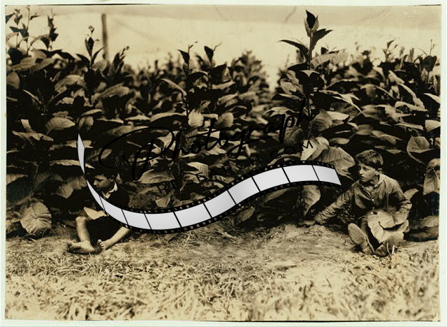 Title: Young pickers in field, American Sumatra Tobacco Co. We found 34 boys from 9 to 15 years. Location: Weatogue, Connecticut / L.W. Hine.