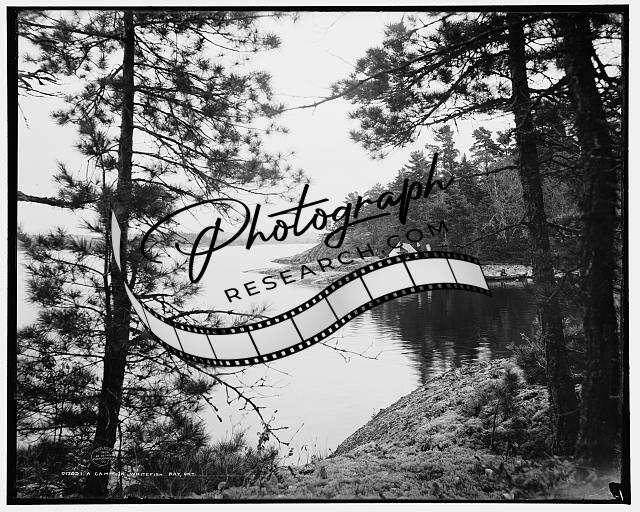 Camp,bays,shoreline,trees,Whitefish Bay,Ontario,Detroit Publishing Company,c1904