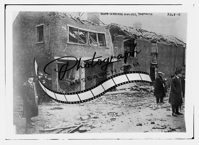 Bomb wrecked houses,Yarmouth,damage,rubble,people,Bain News Service