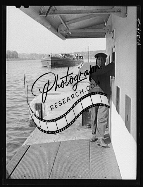 Title: Sailor slacking of ship's hawser as vessel settles in Lock Eleven. Amsterdam, New York