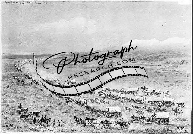 Oregon Trail in South Pass,1852,Covered wagons,people