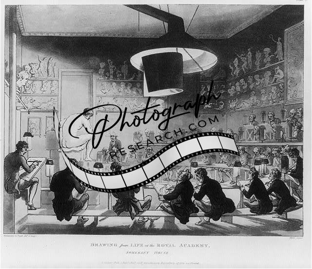 Drawing from Life at the Royal Academy,Somerset House,nude male model,1808