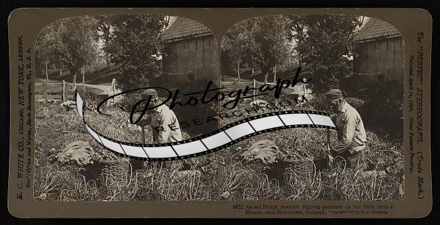 An old Dutch peasant digging potatoes on his little farm at Rhoon, near Rotterda