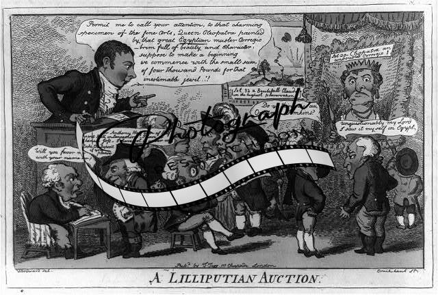 A Lilliputian Auction,Art Collectors,Comic Scene,Queen Cleopatra,Parody,c1800