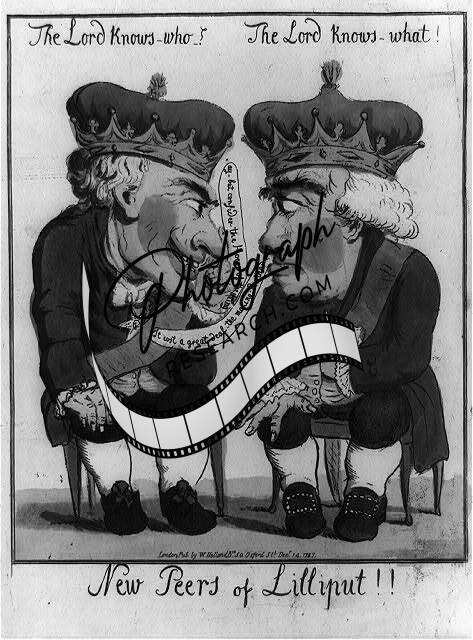 New peers of Lilliput!!,Cartoon,British Men wearing Crowns,Spoof,1797,Peerage