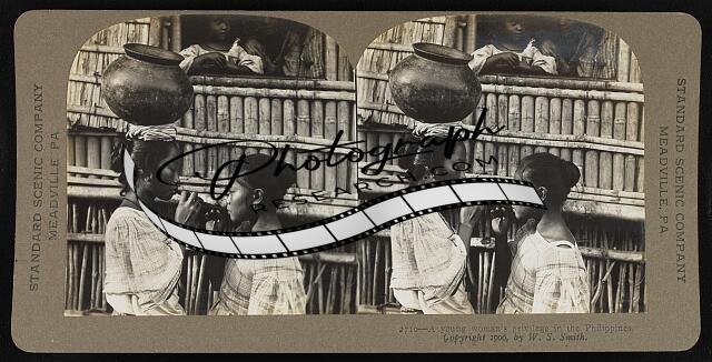 Filipino girls stripping the tobacco leaves for cigar manufacture, Manila, Phili