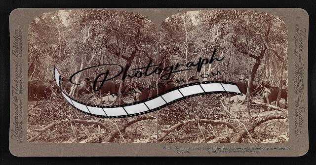 Wild elephants (104) inside the Stockade--great Kraal of 1902--interior Ceylon