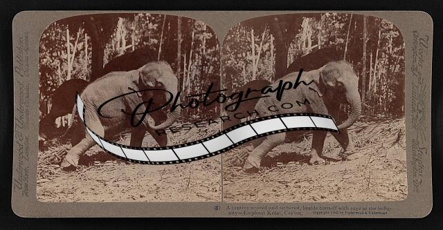 A captive noosed and tethered, beside himself with rage at the indignity--elepha
