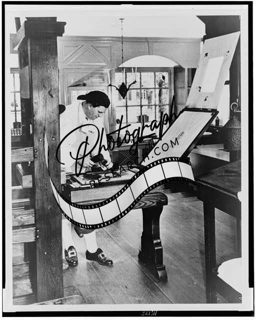 August Klapper,eighteenth century printer's garb,Colonial Williamsburg,VA,1950