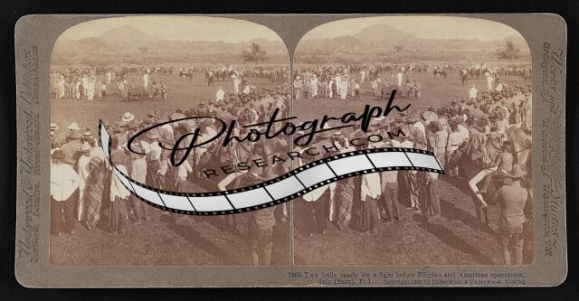 Two bulls ready for a fight before Filipino and American spectators, Jolo (Sulu)