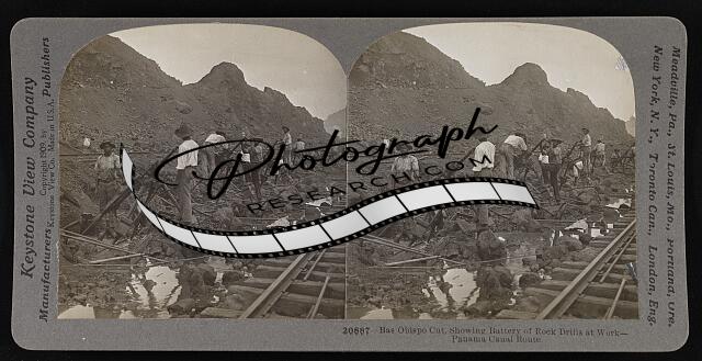 Bas Obispo cut, showing battery of rock drills at work - Panama Canal route