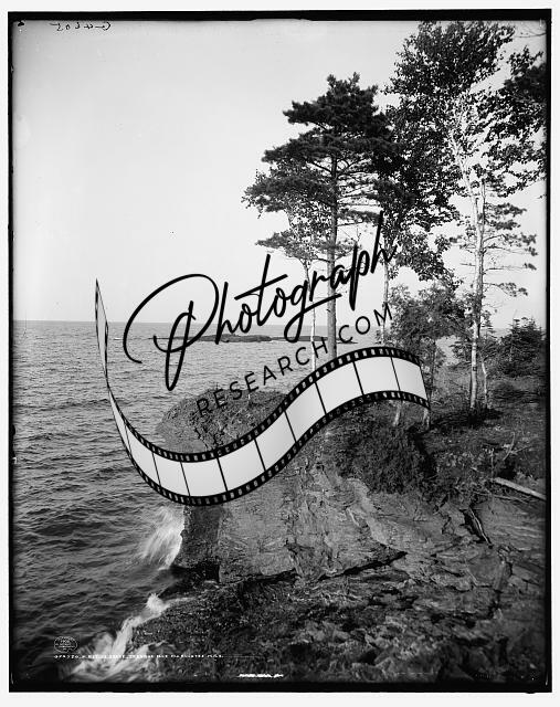 Shore,Presque Isle Park,waterfronts,trees,rocks,Marquette,Michigan,MI,c1908