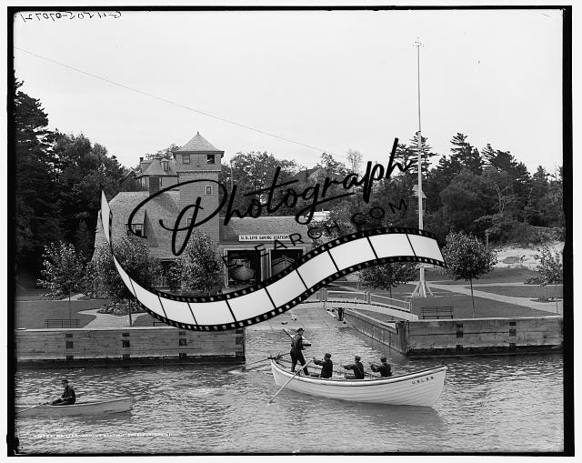 United States life saving station,docks,boats,Charlevoix,Michigan,MI,c1908