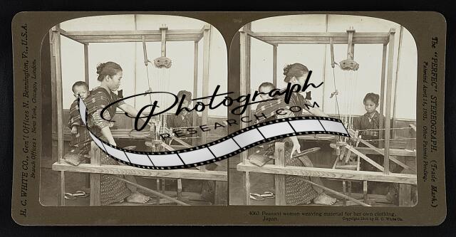 Peasant woman weaving material for her own clothing, Japan