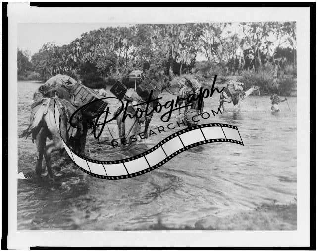 Camels Transporting Equipment,river,Frick Expedition to Abyssinia,c1910,Ethiopia