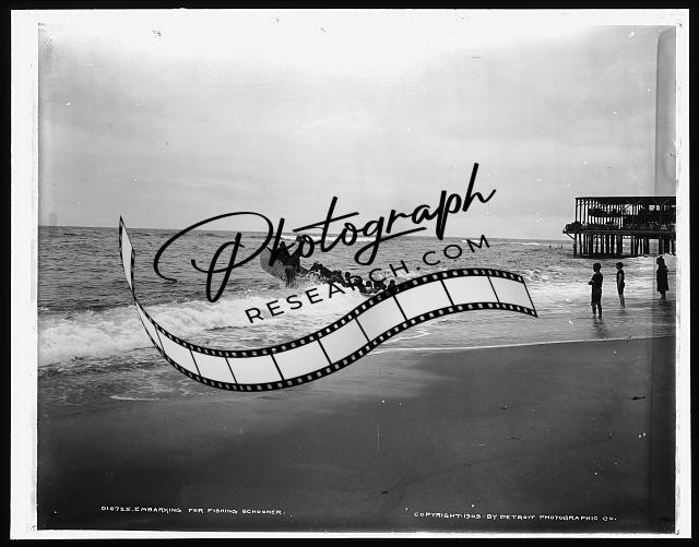 Embarking,fishing schooner,beaches,rowboats,canoes,Ashbury Park,New Jersey,c1903