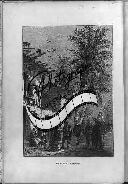 Scene in St. Augustine,people,dog,donkey,Palm trees,FL