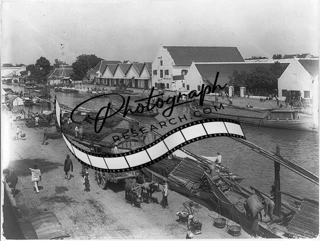 Transportation,Boats,Ox Carts,Feet,China,c1890,Pedestrian,Traffic,Docked,Shore