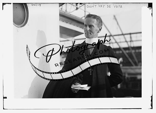 Count Vay de Vaya,Priest?,cross,aboard ship,Bain News Service,holding papers