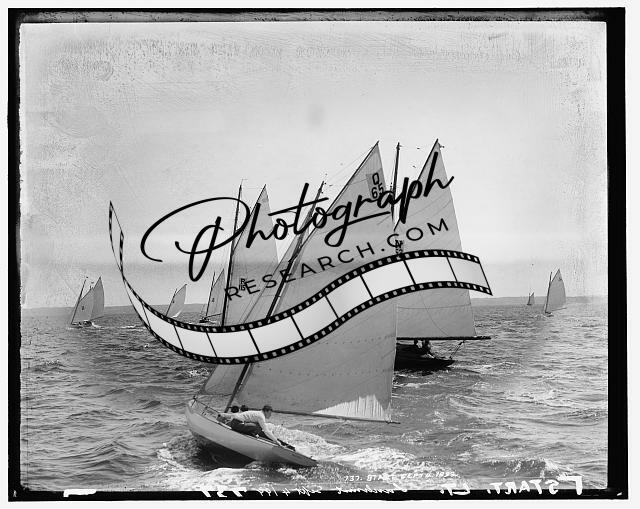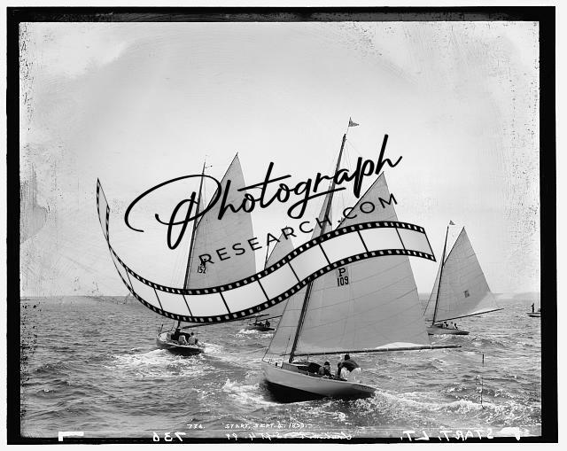 Start,Larchmont,Nora,regattas,yachts,water vessels,boats,ships,sailing,1899