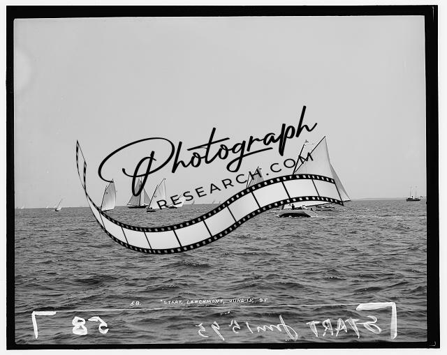 Start,Larchmont,Nora,regattas,yachts,water vessels,boats,ships,sailing,1895