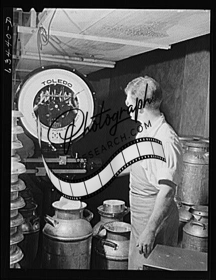 Title: Milk which has been pasteurized running over cooler. Antigo, Wisconsin