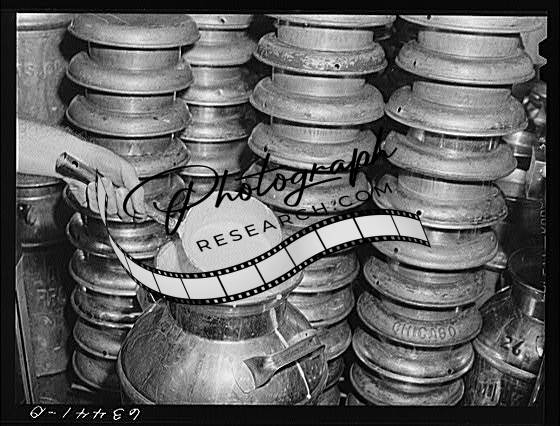 Title: Clamping top on barrel of powdered milk. Milk condensary, Antigo, Wisconsin