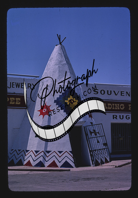 Title: Apache Canyon Trading Post, teepee and car, Routes 62 and 180, Whites City, New Mexico