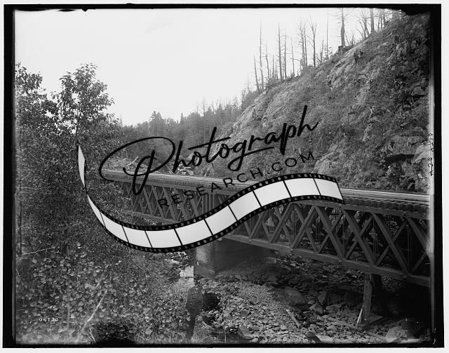 Montreal River,railroad bridge,rock cut,trains,tracks,cliffs,Wisconsin,WI,1880 1