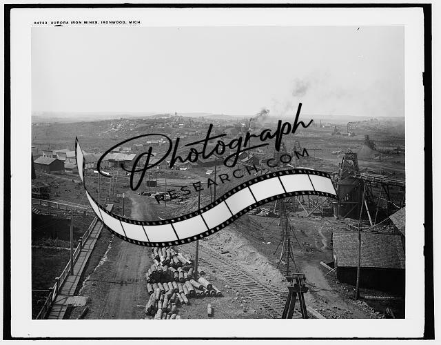 Aurora iron mines,ore industry,railraod tracks,cars,Ironwood,Michigan,MI,1880