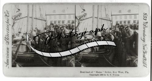 Boat-load of MAINE relics,Key West,Florida,c1898,people looking at relics,boat