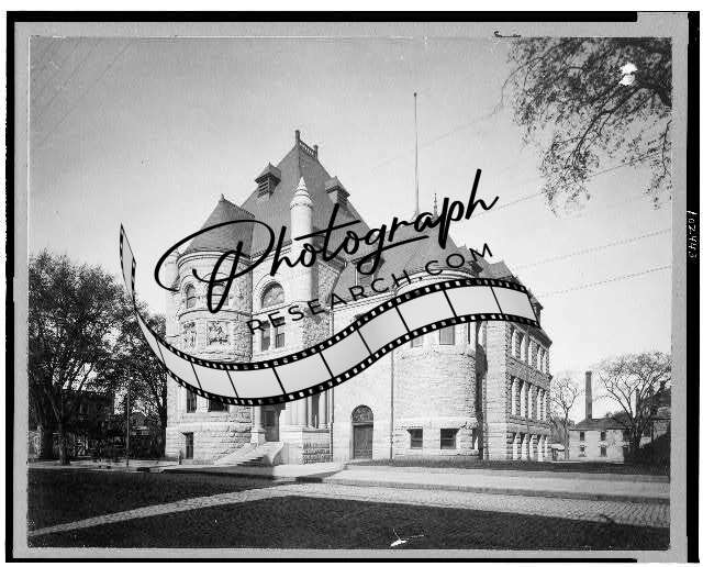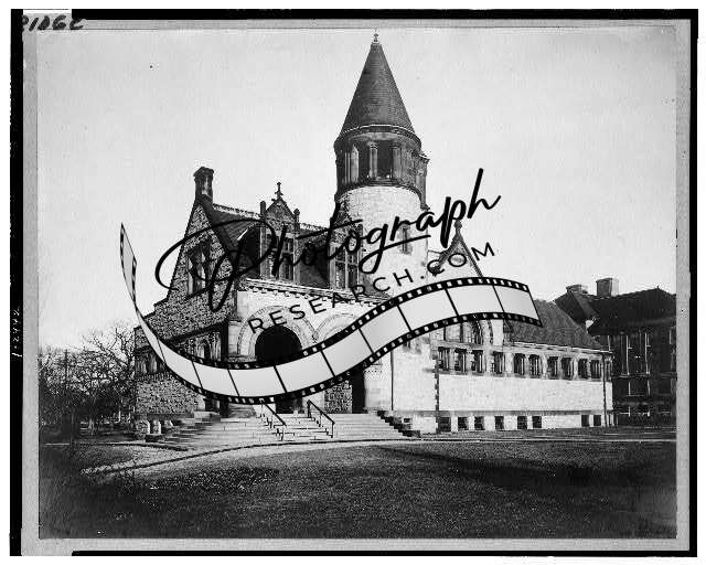 Exterior,public library,buildings,stone,roof,turret,Lowell,Massachusetts,MA,1890
